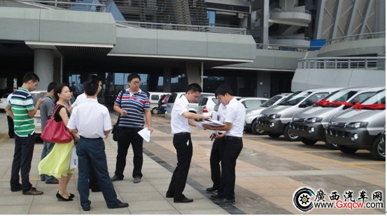 移交車輛抵達(dá)廣西體育中心,等待車主接收