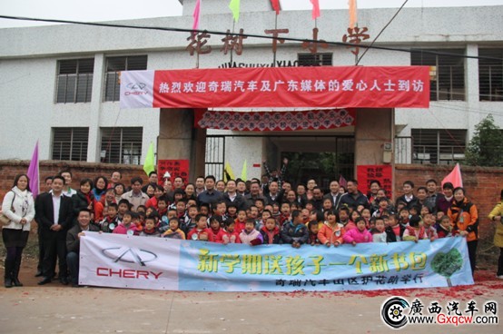 2012年12月12日,這是一個(gè)幸福、吉祥的日子,以“新學(xué)期送孩子一個(gè)新書(shū)包”為主題的奇瑞汽車粵北山區(qū)助學(xué)活動(dòng)如期舉行。本次活動(dòng)由奇瑞汽車華南大區(qū)聯(lián)合華南全體銷售服務(wù)商舉辦,同時(shí)得到了韶關(guān)市社會(huì)公益組織“韶關(guān)義工會(huì)”的大力支持。韶關(guān)南雄市花樹(shù)下小學(xué)近百名師生、奇瑞汽車新老客戶代表、奇瑞公司代表、奇瑞廣東省各銷售服務(wù)商代表、以及廣東省主流媒體記者代表近200人30臺(tái)車共同參與了本次活動(dòng)。