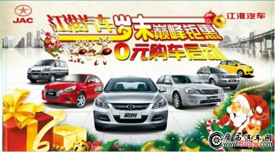 3、為慶祝圣誕和元旦雙節(jié),江淮推出“0”元購車計劃,活動期間推出部分指定車型0元購車計劃,限量8臺