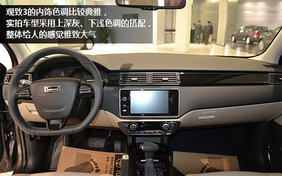 觀致3儀表盤(pán)正中的3.5英寸彩色TFT多功能顯示屏不僅可以顯示行車信息,還可以與觀致的多媒體信息娛樂(lè)系統(tǒng)的信息同步顯示。