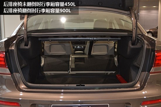 觀致3的儲(chǔ)物空間非?捎^,4/6式可折疊后排座椅,與后備廂連通,后排座椅未翻倒時(shí)行李廂容量450L;后排座椅翻倒時(shí)行李廂容量900L。