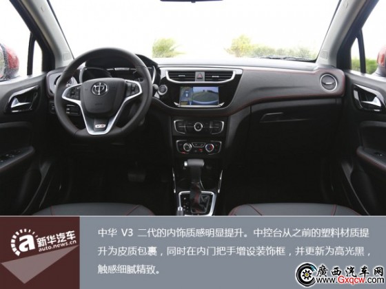 中華V3二代的內(nèi)飾質(zhì)感明顯提升。中控臺(tái)從之前的塑料材質(zhì)提升為皮質(zhì)包裹,同時(shí)在內(nèi)門把手增設(shè)裝飾框,并更新為高光黑,觸感細(xì)膩精致。在許多細(xì)節(jié)之處,中華V3二代也十分用心,方向盤采用紅色縫線設(shè)計(jì),全系皮質(zhì)座椅和全系中央扶手更在同級(jí)車中獨(dú)樹一幟。