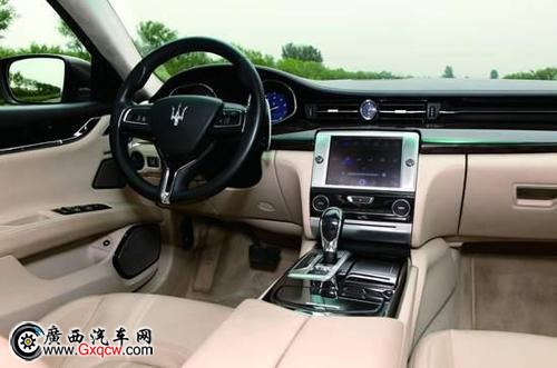 此時,瑪莎拉蒂總裁V6的車鑰匙就在我手里,它就像一件精心雕琢的奢侈品,也許這就是百年歷史所積淀的奢華底蘊。打開車門,映入眼簾的依然是奢華的座艙?偛玫能噧(nèi)并不像GT系列那樣營造出濃厚的戰(zhàn)斗氣息,反而是用大面積的真皮、大量的手工縫制來營造豪華感。