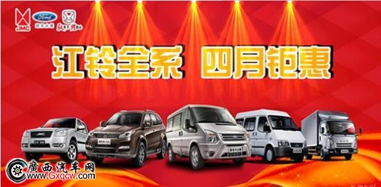 暖春四月,廣西江鈴汽車4S店,為答謝回饋新老客戶長期以來的支持與厚愛,四月鉅惠,豪禮驚喜不斷,你還在等什么?!咨詢熱線:0771-3119811/3800599.
