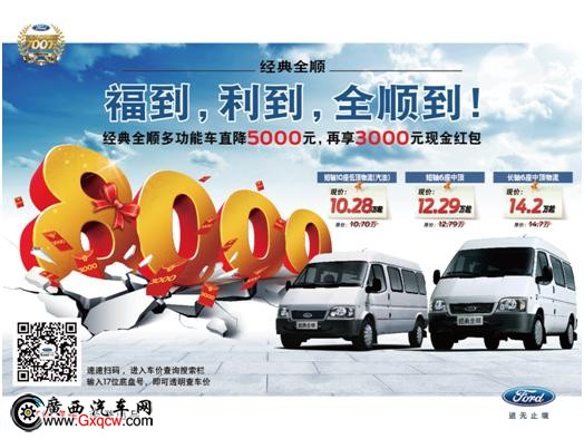 近日,據(jù)小編走訪廣西江鈴了解到,11月到店購江鈴全順多功能指定車系即可享受現(xiàn)金優(yōu)惠1500元,歡迎廣大朋友到店搶購。咨詢熱線:0771-3119811.