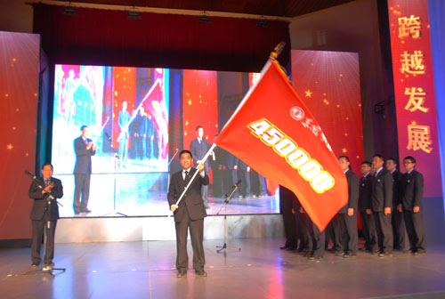 年會在東風(fēng)小康2011年目標(biāo)銷量宣誓授旗儀式中結(jié)束。東風(fēng)小康營銷服務(wù)商和營銷服務(wù)一線戰(zhàn)士起立共同宣誓,張總代表東風(fēng)小康汽車公司接受宣誓并將東風(fēng)小康2011年銷售目標(biāo)大旗交給東風(fēng)小康營銷戰(zhàn)士們。