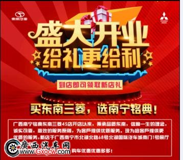 11、南寧高B格東南4S店即將開業(yè),東南老車主憑行駛證即可獲得售后代金券!