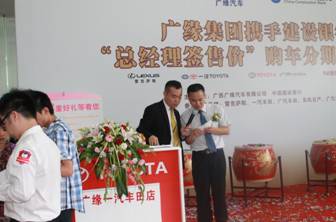 2012年5月26廣緣汽車攜手建設(shè)銀行專場團(tuán)購活動,在廣緣廣豐店趙總及廣西建設(shè)銀行區(qū)分行總經(jīng)理攜手揭幕