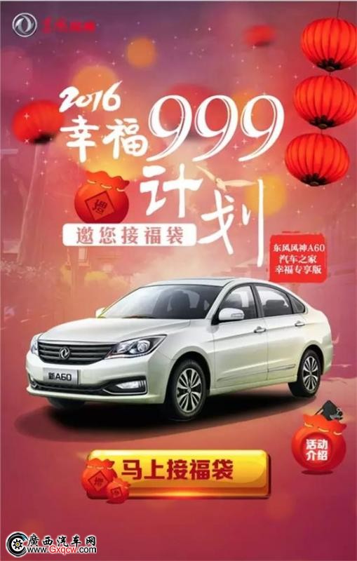 源于情人節(jié)的幸福感召,東風(fēng)風(fēng)神與汽車之家聯(lián)合推出新A60汽車之家幸福專享版,為你打造獨特幸福專享身份,誠意回饋廣大消費者,**僅限999臺,現(xiàn)在購車,更有四重好禮,具體時間和內(nèi)容,詳見專題。