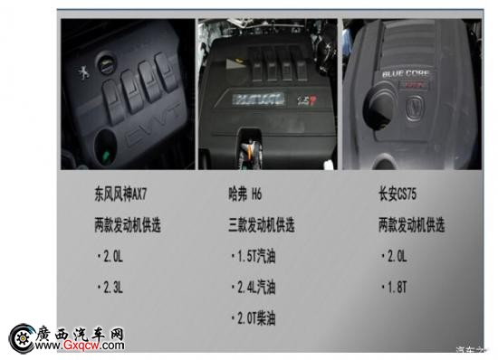 東風(fēng)風(fēng)神AX7 2.3L發(fā)動機 | 哈弗H6升級版 1.5T發(fā)動機 | 長安CS75 1.8T發(fā)動機 | |