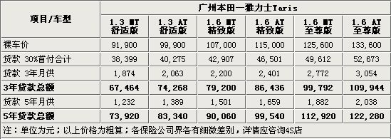 對于希望貸款購車的朋友來說,目前豐田雅力士的貸款購車也可以正常進行。豐田汽車擁有自己的直屬金融機構(gòu),可以幫助消費者更快捷的辦理貸款業(yè)務(wù)。以裸車價(已含購置稅)9.19萬的舒適版雅力士為例,您最高可以享受到70%、3年的按揭(公務(wù)員、教師可達5年),這樣的話購買該車的首付金額總計大致在3.8萬元上下,3年月還1874元、5年月還1232元。對于一般收入在6-8千元上下的家庭來說還是比較容易承擔(dān)的。3年一共要還款6.7萬元左右,5年貸款則要還款7.4萬元左右。