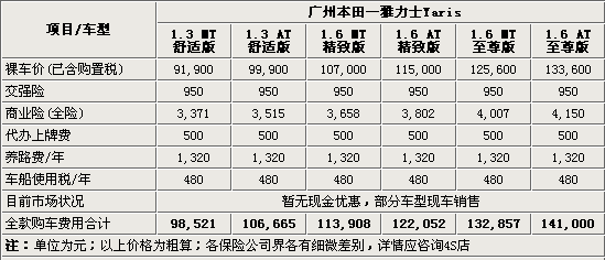 2008年6月26日,廣州豐田的首款經(jīng)濟型轎車正式上市,首批上市的共有1.3L、1.6L兩種排量9款車型,廠家指導(dǎo)價從9.19萬元至13.36萬元不等。與其它汽車廠商不同的是,雅力士公布的廠商指導(dǎo)價包含了其自身的車輛購置稅。那么對于想要購買該車的朋友來說,將這部豐田雅力士開到家以后的總計花費要達到多少元呢?提車時又該注意些什么呢?下面我們就來一起了解一下吧!
