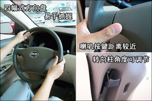 四輻方向盤沒有采用真皮包裹,但手感較好。轉(zhuǎn)向柱角度可調(diào)節(jié),深度無(wú)法調(diào)節(jié),喇叭觸點(diǎn)距離左右手經(jīng)常抓握的位置較近。
