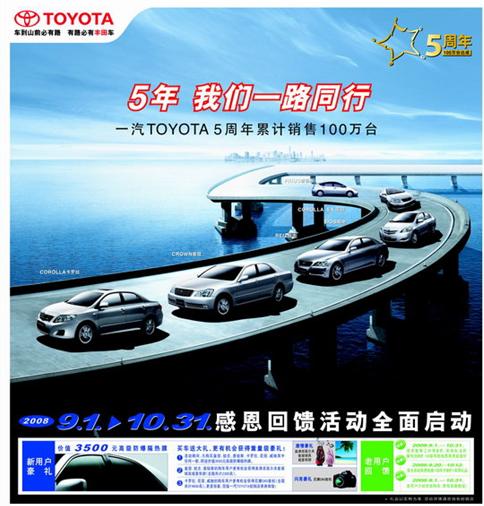 南寧中達豐田感謝有您五年來一路支持,回饋用戶,以禮相待,同時“情濃中秋,歡滿國慶,快樂購車”活動正在進行中...濃情大禮包與快樂大抽獎讓您快樂購,GO!