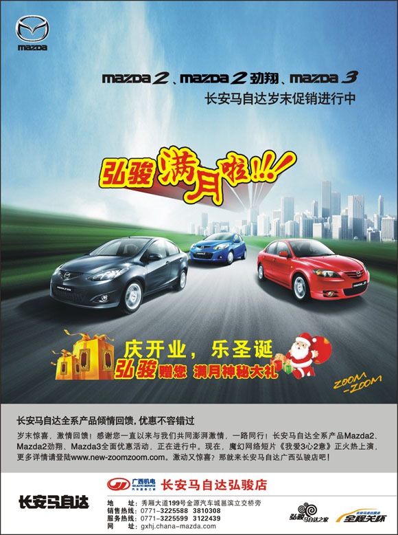 (廣西汽車網 訊)為了慶祝長安馬自達廣西第二家4S店開業(yè)一個月,長安馬自達弘駿店對旗下全系車型做歲末促銷活動。具體優(yōu)惠請聯系弘駿4S店。
