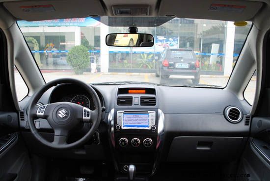 在內(nèi)飾上,兩廂SX4與天語SX4相比基本沒有改變,天語SX4以黑色的中控臺界面搭配米色內(nèi)裝,典型的家用轎車色調(diào)和諧且耐看。SX4中控臺的塑料感非常強,而且以硬質(zhì)塑料為主。儀表臺的設(shè)計簡潔有序,各種功能按鍵的位置也清晰易讀,駕駛者操作起來簡單明了。在中控臺的兩邊還設(shè)有鍍鉻飾板,三個調(diào)節(jié)旋扭也以金屬圓環(huán)裝飾,看起來相當(dāng)清爽,具有不錯的質(zhì)感。