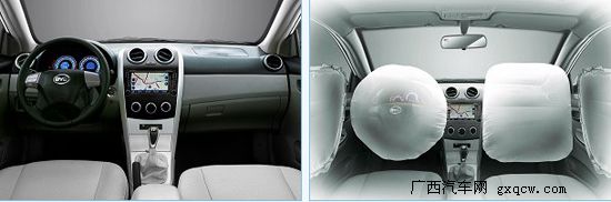 G3是一款定位高于比亞迪F3的車型,在安全配置上有所進(jìn)步,最低配車型也標(biāo)配了ABS+EBD,同時(shí)可以選裝雙安全氣囊,加上四輪盤剎、車門側(cè)防撞梁和高剛性車身,安全性有了提高。G3高配的兩款車型均配備了側(cè)氣囊和側(cè)氣簾,成為這一價(jià)位上為數(shù)不多的配有6安全氣囊的車型。