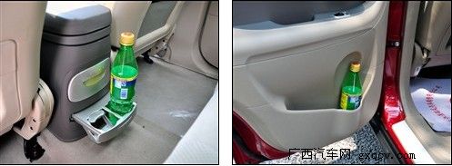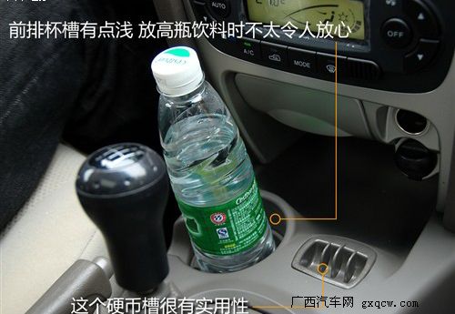 瑞鷹的內(nèi)飾給人平和之感,布局干凈整潔,分區(qū)明確,只是音響控制鍵太小,影響了實(shí)際使用的感覺,儲物格的設(shè)置還是比較的人性化,例如分體式杯架和檔把錢的硬幣槽就比較少見,只是杯架的高度并不就盡如人意,如果放置較高的水瓶很容易倒。后排瑞鷹除了有中間的杯架外,還可以在后門的儲物格放置水瓶,并且上端有凹槽,方便乘客拿取,這一點(diǎn)江淮做的很用心。