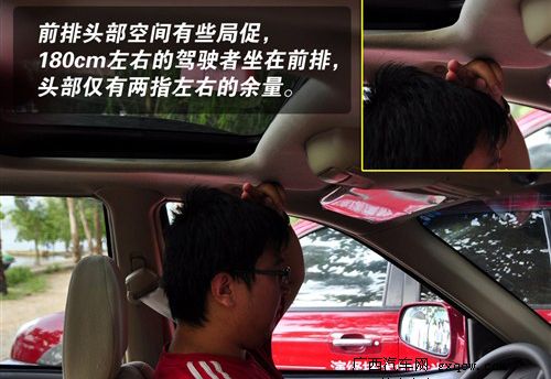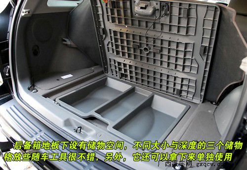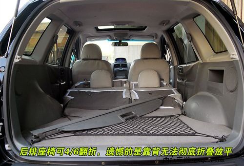瑞鷹在空間方面雖然憑借其大尺寸的身材,給人寬大的感覺,但是實(shí)際上空間只能說是夠用,尤其是前排,身高180mm的乘客,坐在駕駛座頭部還有兩指左右的余量,同一名乘客坐在后排,大約有一拳的余量。后排座椅雖然可以4/6放倒,增加后備廂的儲物空間,但是不能全部放平,這在一定程度上影響了后備廂的儲物能力。而后備廂地板上的儲物格可以放置一些維修工具,這還是想的比較周全。