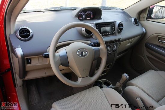 內(nèi)飾風(fēng)格比較溫馨,傾斜的中控臺(tái)和中置的儀表盤(pán)比較有特點(diǎn),細(xì)節(jié)部分做工也對(duì)得起它的價(jià)錢(qián)。雖然軸距只有2368mm,但是得益于較長(zhǎng)的車(chē)長(zhǎng),炫麗前后排的腿部空間都還是比較夠用的。而接近于A級(jí)車(chē)的車(chē)寬使得后排有能力并排擠下3個(gè)人,超過(guò)1.5米的車(chē)高以及平直的車(chē)頂可以令一個(gè)身高1.8米的人坐在后排頭部沒(méi)有壓抑的感覺(jué)。