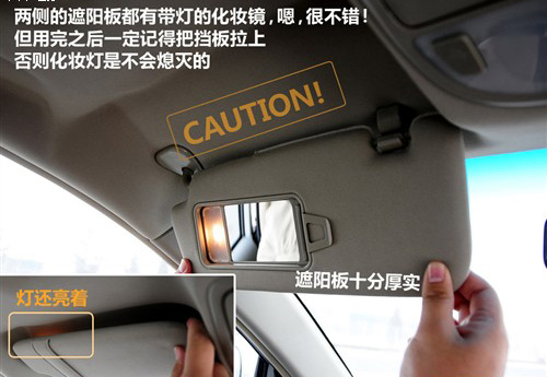 車內雖然不如外面那么吸引人,顯得有些中庸和保守,但是實用性并不差。很多細節(jié)都能夠體現(xiàn)人性化的理念,比如帶有阻尼的手套箱,在自主品牌的同級別車里就很少見,甚至車頂?shù)睦忠餐瑯訋в凶枘。帶有照明燈的遮陽板化妝鏡,雖然也是小東西,但確實給人的感覺不一樣。