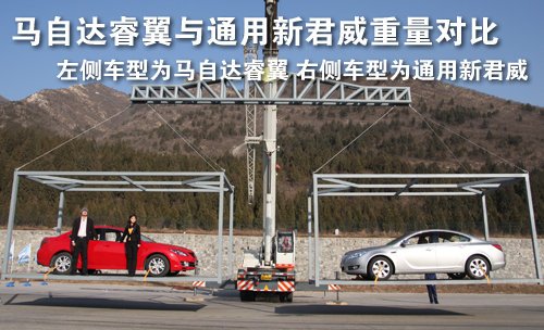 馬自達(dá)睿翼與別克新君威重量對(duì)比 左側(cè)為睿翼 右側(cè)為新君威