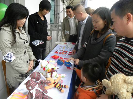 活動(dòng)現(xiàn)場(chǎng)布置溫馨精致,一張長(zhǎng)達(dá)5米的桌子上展示的全是聾啞兒童們的手工藝品,樣樣栩栩如生,樣樣精致誘人。引得寶馬車(chē)主們紛紛駐足觀(guān)看、選購(gòu),獻(xiàn)上自己的一片愛(ài)心。