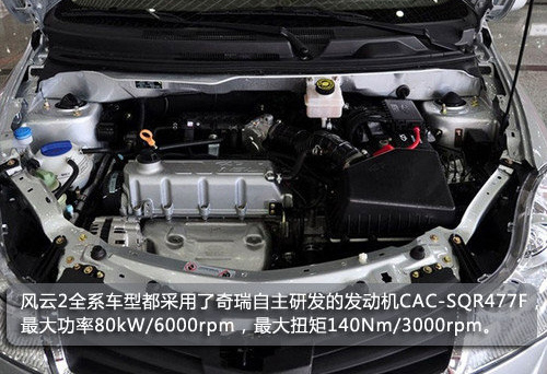 目前風(fēng)云2全系均搭載代號為ACTECO-SQR477F的1.5L四缸16氣門發(fā)動機,最大功率80kW(109馬力)/6000rpm,最大扭矩140Nm/3000rpm,從數(shù)據(jù)上看相比同排量對手還是頗有競爭力的。