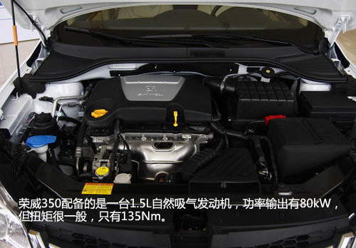 榮威350配備的是一臺1.5L自然吸氣發(fā)動(dòng)機(jī),功率輸出有80kW,但扭矩很一般,只有135Nm?梢钥闯觯@是一款偏重功率調(diào)校的機(jī)型。在國內(nèi)車市,與榮威350處于同一級次的車型很少采用1.5L發(fā)動(dòng)機(jī),因此在參數(shù)對比這一塊,榮威350有點(diǎn)吃虧。功率還過得去,但扭矩會輸給很多對手。