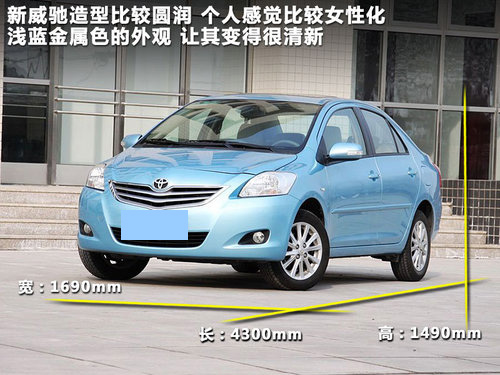 豐田新威馳在在一貫走中庸路線的豐田車型中已經(jīng)算比較有突破性的,無(wú)論前臉還是尾部設(shè)計(jì),新威馳的造型都很圓潤(rùn),而且?guī)в袔追挚蓯?ài),個(gè)人感覺(jué)新威馳應(yīng)該很招年輕女性的喜愛(ài),同時(shí)新威馳獨(dú)有的淺藍(lán)金屬外觀色讓其看起來(lái)十分清新。新威馳長(zhǎng)寬高分別達(dá)到了4300mm、1690mm和1490mm,完全滿足了家庭A0級(jí)轎車的身材,同時(shí)也滿足了年輕消費(fèi)者對(duì)轎車的使用需求。