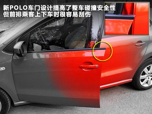 新Polo車門設(shè)計存在一些危險,前排乘客上下車是很容易被車門的突出設(shè)計刮傷到,但是在發(fā)生碰撞時可以大大提高整車的抗沖擊力,以確保駕駛艙的堅固性。特別提醒:前排乘客上下車時一定注意安全。