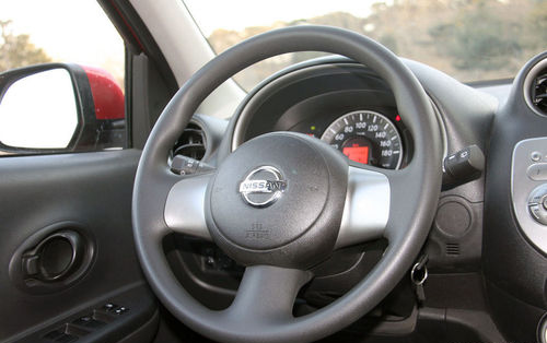 與造型的可愛路線不同,瑪馳的內(nèi)飾給人以一種粗獷的味道:看中控臺(tái)上的面板,都是粗糙的麻面!不要誤會(huì),這不是日產(chǎn)的做工變糙了,而是它的設(shè)計(jì)師為了造成漫反射,從而降低你在烈日下開車時(shí)的視線刺激而特意為之。細(xì)看之下,這些部件的接縫都都還是比較均勻細(xì)致的。