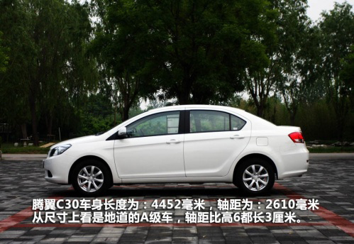 騰翼C30的外觀設(shè)計并沒有太多的出彩之處,但卻非常符合家用車型大方中庸的設(shè)計理念,設(shè)計上也顯得比較成熟。 騰翼C30車身尺寸為長4452mm、寬1705mm、高1480mm,軸距2610mm,整車整備質(zhì)量為1145Kg。