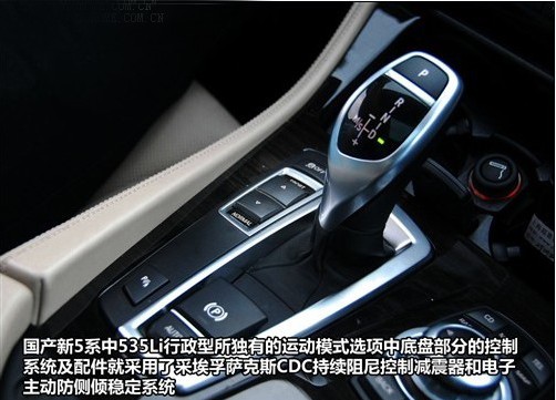 而在華晨寶馬5系的頂配車型535Li行政型上所裝備動(dòng)態(tài)底盤控制系統(tǒng)也是由采埃孚提供的,準(zhǔn)確的說是采用了采埃孚薩克斯CDC持續(xù)阻尼控制減震器和電子主動(dòng)防側(cè)傾穩(wěn)定系統(tǒng)。開過新寶馬5系的朋友很多都會(huì)反映它的底盤變軟了,更舒適了但卻少了一些寶馬味道,這也許是廠商為了更好的適用中國路況以及消費(fèi)者的需求所作出的改進(jìn),但如果您想要找回原來的寶馬味道,可以按下?lián)醢雅缘陌粹o,調(diào)整到SPORT模式,熟悉的寶馬式硬朗底盤就回來了。