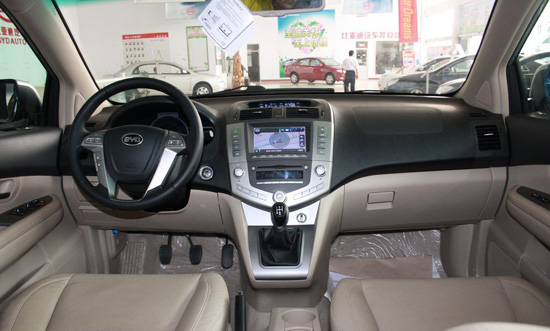 內(nèi)飾設(shè)計(jì)方面,比亞迪S6的整車(chē)內(nèi)飾采用了黑色為主、銀色裝飾為輔的設(shè)計(jì)思路,明顯是想將自己的產(chǎn)品定位于更多的年輕客戶(hù)群。四幅式的方向盤(pán)尺寸較大,而且從我們車(chē)展的實(shí)拍圖片來(lái)看,上面還集成了多項(xiàng)功能。中控面板的設(shè)計(jì)整體比較簡(jiǎn)單,中央的大尺寸顯示屏是亮點(diǎn)配置,預(yù)計(jì)將會(huì)繼承導(dǎo)航、倒車(chē)影像等高端配置介入其中。另一個(gè)讓我們感覺(jué)很有意思的地方就是S6的檔位設(shè)計(jì)很像一輛MPV,有點(diǎn)懷擋的味道,而且從我們車(chē)展接觸到的這臺(tái)自動(dòng)擋車(chē)的情況來(lái)看,擋把的手感很不錯(cuò),而且?guī)в惺肿砸惑w的換擋模式。