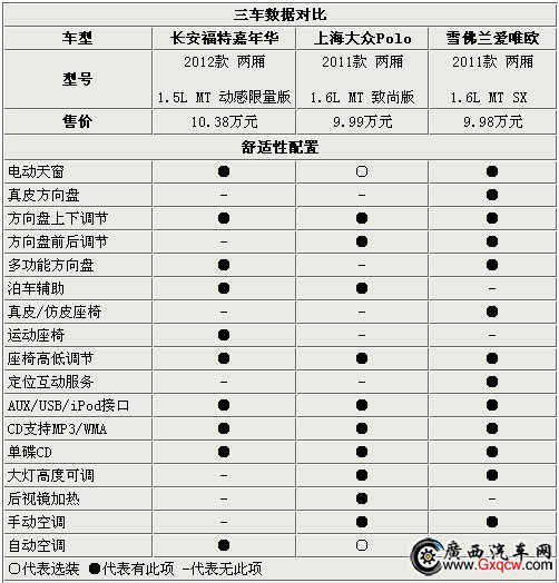 三款車盡管都不是其車系中的最高配,但實用性配置基本都已經(jīng)配齊。而嘉年華的自動空調,愛唯歐的定位服務系統(tǒng)以及Polo的后視鏡加熱分別是三款獨有的配置。