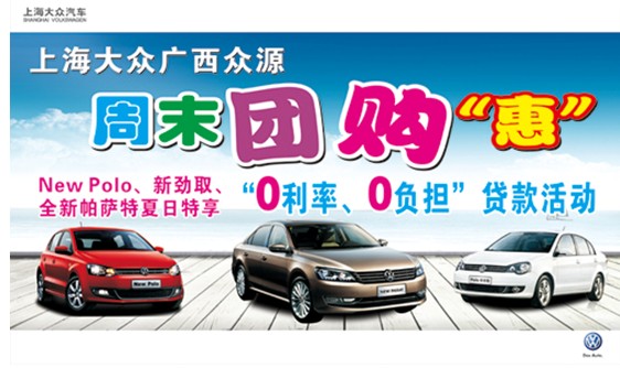 2012火熱夏季,為慶祝本店在剛剛結(jié)束的2012年第十九屆廣西汽車交易會(huì)(安吉車展)上取得的驕人戰(zhàn)績(jī),同時(shí)更是為了回饋廣大上海大眾車主對(duì)我店一直以來(lái)的關(guān)心、支持與厚愛(ài),上海大眾廣西眾源4S店集合現(xiàn)有資源于本周末(4月21日-22日)隆重推出【周末團(tuán)購(gòu)“惠”】活動(dòng)。