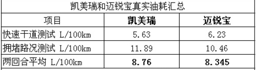 最終,凱美瑞實(shí)測(cè)平均油耗為11.89L/100km,邁銳寶則很讓人驚訝地做出10.46L/100km的成績(jī)。