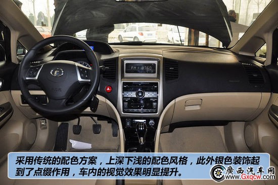 C50的內(nèi)飾整體觀感是不錯的,和諧中庸同時不乏一些時尚。分層式儀表借鑒了某款成熟合資車型的造型,上層以數(shù)字顯示速度,下層是水溫、轉(zhuǎn)速以及油量信息。