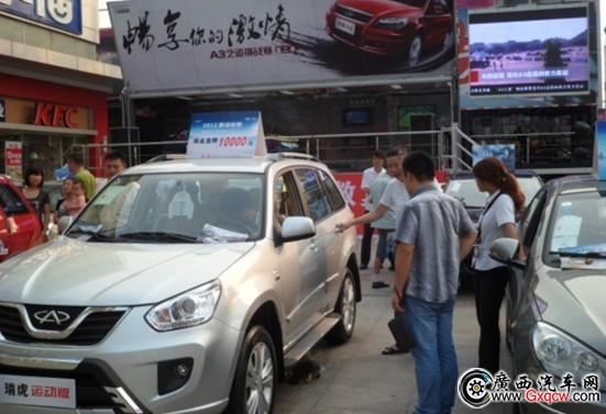 作為大篷車現(xiàn)場(chǎng)唯一的SUV車型,瑞虎憑借動(dòng)感十足的外形、搶眼的動(dòng)力參數(shù),以及頗具誘惑力的價(jià)格,吸引了許多人的關(guān)注。在山東濰坊奇瑞大篷車現(xiàn)場(chǎng),人們將現(xiàn)場(chǎng)展出的一輛瑞虎2012款團(tuán)團(tuán)包圍,試乘體驗(yàn)的人絡(luò)繹不絕。