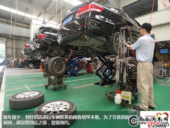 “雖然春節(jié)前大家都比較忙,但是自駕回家,尤其是長(zhǎng)途旅程,為安全起見,出行前應(yīng)該抽個(gè)時(shí)間去給車輛做個(gè)體檢和保養(yǎng)! 廣汽豐田南寧廣緣高新區(qū)店服務(wù)經(jīng)理說,車輛出行前應(yīng)做好胎壓、燃油、機(jī)油、水箱、雨刮器等車輛檢查,尤其要對(duì)車輛的剎車系統(tǒng)進(jìn)行檢查,并做好防凍保暖工作。