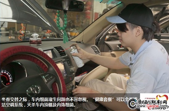 此外,春節(jié)期間隨著車主的用車頻率大大增高,也給愛車的性能提出了更要的要求。面子重要,里子更重要!怎樣才能讓愛車開起來“有里有面”?為了滿足愛車多元化的保養(yǎng)需求,廣汽豐田南寧廣緣高新區(qū)店店推出了專業(yè)養(yǎng)護(hù)套餐促銷活動(dòng),包括養(yǎng)心套餐、動(dòng)力套餐和健康套餐!梆B(yǎng)心套餐”針對(duì)冬季發(fā)動(dòng)機(jī)易發(fā)生啟動(dòng)困難的問題,保養(yǎng)車輛的心臟發(fā)動(dòng)機(jī),讓它保持強(qiáng)勁穩(wěn)定的動(dòng)力,該套餐既有清潔保護(hù)的作用,還有耐磨抗壓的功能。如果長(zhǎng)途行駛后的車主發(fā)覺愛車加速不良,“動(dòng)力套餐”則能夠徹底溶解剝離臟物,保護(hù)和潤(rùn)滑燃油系統(tǒng)。而在冬春交替之際,車內(nèi)細(xì)菌滋生問題也不容忽視!敖】堤撞汀笨梢匀媲鍧嵖照{(diào)系統(tǒng),滅殺車內(nèi)頂棚及內(nèi)飾細(xì)菌。