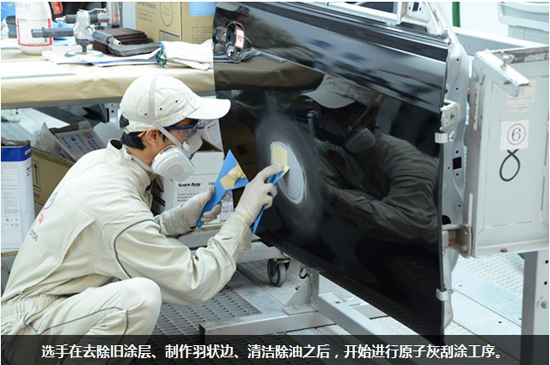 鈑金和噴漆是汽車維修常見的項(xiàng)目,但要做好,并不簡單。僅噴漆一項(xiàng)就分為上十道工序,一環(huán)扣一環(huán),一項(xiàng)工序處理不好就會影響到最終的噴涂效果!皣娡繉寄芤蠛芨撸币晃贿x手告訴記者,“溫度、距離、時(shí)間等都會對噴涂效果造成影響,只有每一道工序都嚴(yán)格按照廣汽豐田噴漆標(biāo)準(zhǔn)完成,才能確保最終的出品質(zhì)量!