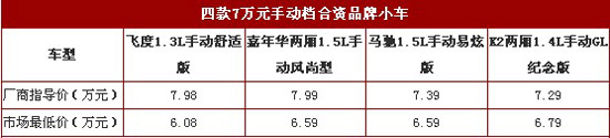 在7萬元以內(nèi)的兩廂小車,作為日常代步的交通工具。要求是合資品牌車型,造型年輕時尚,空間夠大實用,省油好開的手動檔,功能配置滿足基本需求即可。那么我們可以大概的篩選。