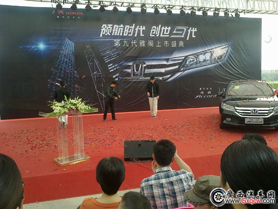 第九代雅閣于北京時(shí)間9月12日正式上市。為了讓廣大車友第一時(shí)間感受到第九代雅閣的魅力,2013年9月14日,廣汽本田廣西南寧恒安店、廣西華昌店、廣西廣星店共同在廣西南寧第十一屆北部灣車展現(xiàn)場(chǎng)舉行了第九代雅閣上市發(fā)布會(huì),諸多嘉賓、媒體、車主應(yīng)邀出席了活動(dòng),共同揭開了“第九代雅閣”神秘的面紗!
