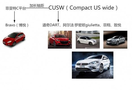 按說,菲亞特要國產(chǎn)一臺運動的兩廂車,Bravo(博悅)似乎是最合情合理的。但是了解菲亞特的人會知道,進口Bravo(博悅)是源自菲亞特的C平臺,而之后的道奇Dart、giulietta都是源自菲亞特-克萊斯勒的CUSW平臺,也就是所謂加長C平臺。