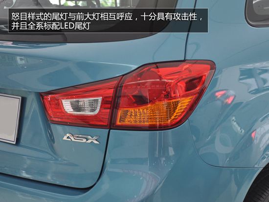 國產(chǎn)新勁炫的尾部造型是典型這一代三菱的家族設(shè)計風格,整體造型非常厚重卻并不顯臃腫。怒目樣式的尾燈與前大燈相互呼應(yīng),十分具有攻擊性,并且全系標配LED尾燈,這一點十分值得肯定。