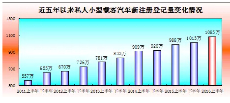 上半年,小型載客汽車保有量達1.47億輛,新注冊登記量達1169萬輛,比去年同期提高166萬輛,同比增長16.57%。