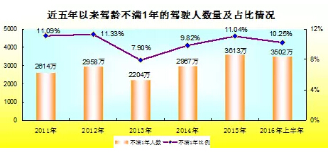 從統(tǒng)計情況看,2015年以來,駕齡不滿1年的駕駛?cè)顺?500萬,新領(lǐng)證駕駛?cè)藬?shù)量激增。