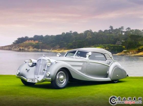 汽車行業(yè)的第一個審美高潮,肯定要數(shù)巴洛克時代,在馬車向汽車轉(zhuǎn)變的陣痛期里,巴洛克藝術(shù)成為汽車設(shè)計的絕對主導(dǎo)。這臺產(chǎn)自1937年的Horch 853A Sport Cabriolet,可以說是巴洛克時代的典型代表。這里的Horch,就是今天奧迪的四個圈之一。
